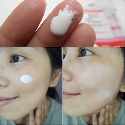 有著雅詩蘭黛系列的恬淡香味,白色的乳液質地,雖是高系數了,但質地卻一點也不會有濃稠的厚重感。