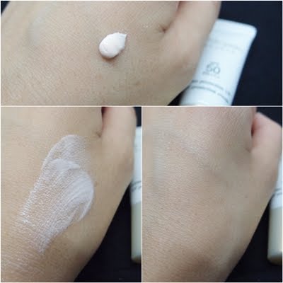 淡粉色的防曬乳,質地有點像是綿密的蛋白霜,味道則是很高雅的香氛