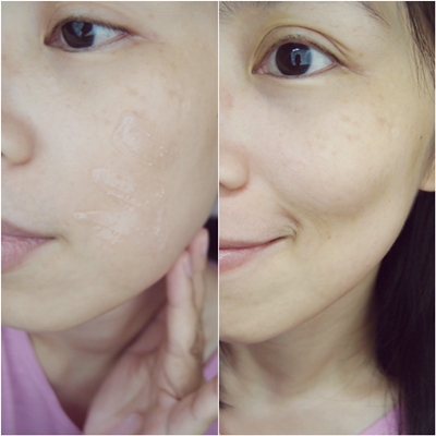 晚間睡前厚敷一層在臉上,等約五分鐘後將凍膜以手的溫度抹勻,將白色顆粒給完全抹至吸收,早上起床時臉上不會因一夜的冷氣而顯得乾燥缺水,時雙頰依然是很保濕,也不會過滋潤對肌膚造成負擔而冒粉刺。