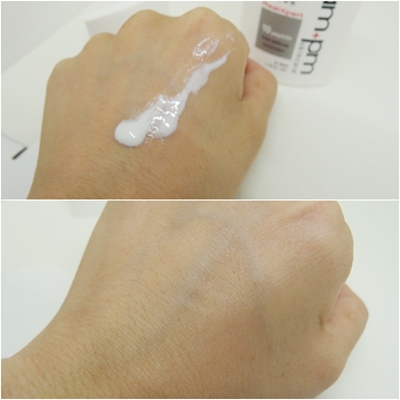 防護乳為白色乳液質地,質地輕盈,肌膚上易於推勻。