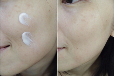 乳液般的質地,塗抹在臉上卻不會有悶熱的厚重感,就像是平時擦的保養乳液一般,只是差別是這是具有SPF50以上的防曬功能,台灣悶熱的夏天也能安心的使用,肌膚完全不會覺得黏膩,反而是有保濕感。