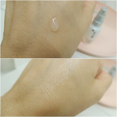 透明的凝露狀,味道是漢方的中藥味,推勻後會呈現水潤感。