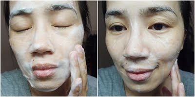 按摩完後的泡沫也消失了許多,泡沫碰到眼睛並不會有刺激感,溫和潔淨肌膚又不會帶來負擔,而成分裡添加的膠原蛋白,能讓潔淨過後的肌膚保濕又不緊繃。