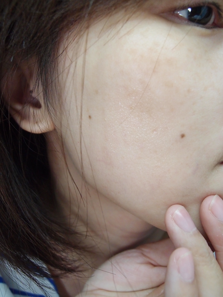 在全臉均勻的塗抹,因為是有精華油,所以只需很少的用