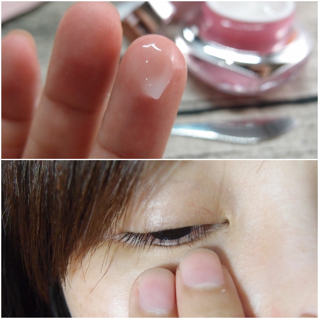 質地是輕盈細緻的凝乳狀,取適量點在眼周,再以指腹輕點開來,亮眼精萃含有高純度的蜂萃及GABA成分,但實際使用時眼周我是沒有刺麻感的,但可能會有刺麻感,所以是較建議夜間使用。