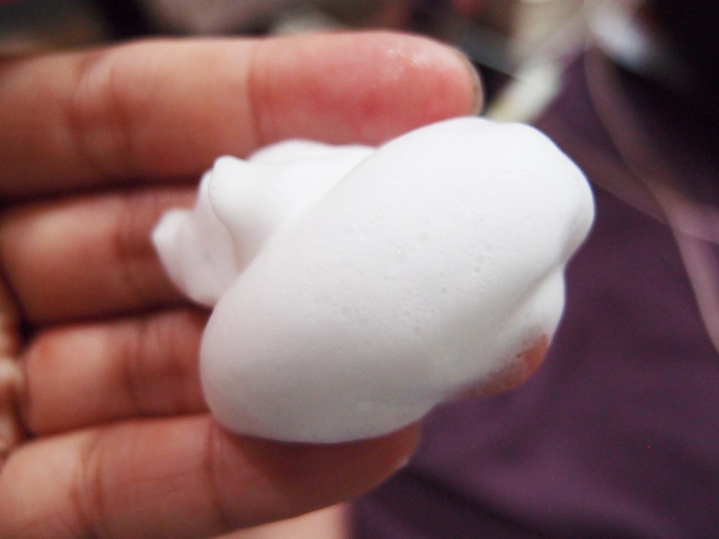 起出的泡沫真的很綿厚,在全臉畫圓按摩時泡沫還是很彈潤,但別以為在沖洗時會很麻煩,泡沫很容易、很快速的沖淨,污垢及老廢角質不會殘留,洗完的臉不會緊繃,依然是保有滋潤保濕感。