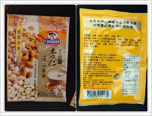 這次的體驗的是桂格穀珍的堅果多多沖泡飲品,堅果加量25%,一天的建議食用量是2包