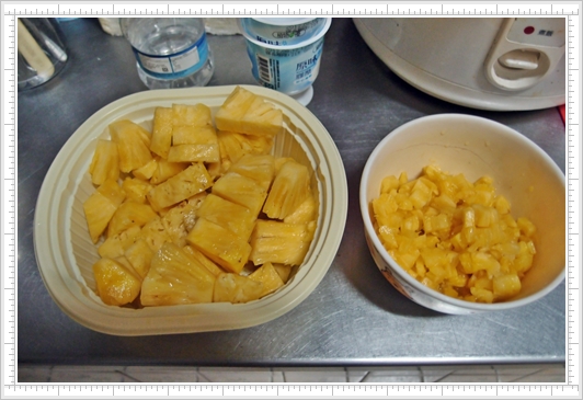 綜合 2012-08-05 01:03:00 鳳梨sorbet 蘋果鳳梨 1顆 水 適量 糖 適量 檸檬 半顆 一部份的鳳梨切成丁狀,其餘加水放入果汁機打碎(老媽提醒下回可將水放成牛奶,這樣鳳梨冰的香氣會更香。)水的量是以能攪碎鳳梨就好,單放鳯梨的話果汁機會攪不動。先將打好的鳳梨汁放入ICE-TW21冰桶內開始製冰,等到鳳梨汁變成水水的冰沙狀時再將果肉倒入繼續攪,等到冰桶攪不動桶內的冰沙時就完成。 這次加入蠻多果糖的,但冰凍後甜度剛剛好,水果的香氣也很OK,又能吃到鳳梨果肉! 創作者介紹 Nellie1595 Nellie1595的部落格