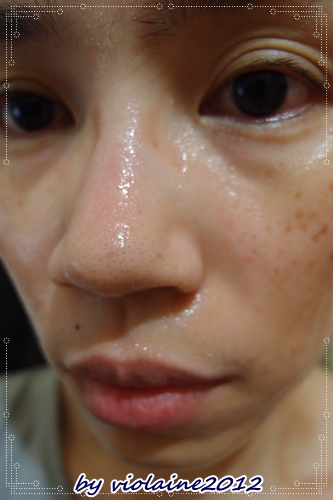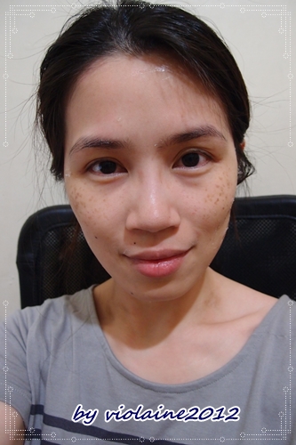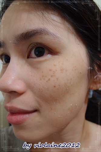 剛撕下面膜,臉上還有殘膠,但臉色卻是很粉嫩亮白,感覺斑點也沒那麼困擾人!