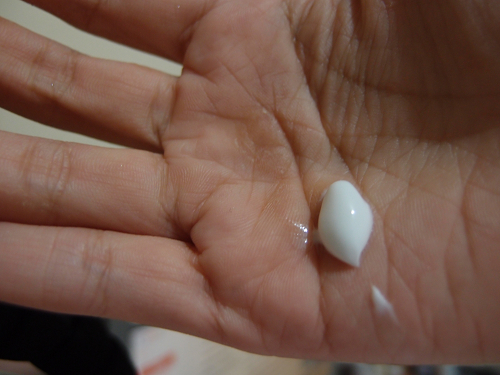 擠出適量護理霜在掌心,搓揉雙手直至護理霜吸收,平時使用時會擦上薄薄的一層做修護,夜晚會塗上厚厚的一層,再戴上手套做強力滋養。護理霜較為濃稠,帶有濃濃的白麝香香味,有酪梨油成份,能修護乾裂的肌膚並潤澤滋養受損肌。