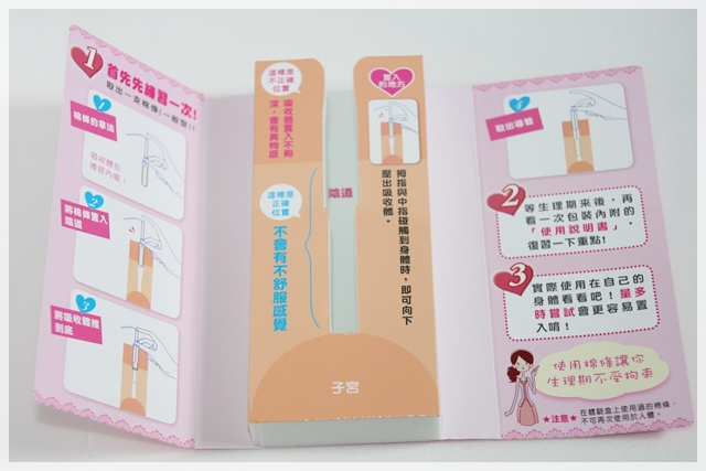 之前使用的棉條還不是導管設計的,初使用時也曾擔心蠻多問題,ex:「萬一線斷在裡面拉不出來怎麼辦?萬一沒放好身體會不會有異物感?」一開始也不知道是否放正確,但後來發現若身體有異物感、悶悶的不舒服就是棉條沒放好,若位置正確,推入棉條也就是件很簡單的事。