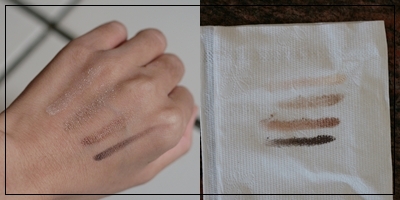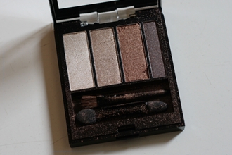 這次收到的是Elite超模訂製眼影盤 -杏棕紡紗 04 這款顏色就是所謂的大地色,是很不容易出錯的眼影顏色 在手背及衛生紙上試色,顏色飽滿,容易塗抹上色! 四色眼影,附上一支眼影棒及一支刷子。 粉盒一下子就弄的髒髒的,>_<, 粉壓的不太密 先以眼影棒沾取適量的眼影(眼影盤由左至右,一層一層的擦上) 在將整個眼窩塗第一格偏白色的眼影時,原本有點擔心眼睛會不會泡泡的, 但在整個眼影盤塗完後,其實有點提亮效果,但又不會造成泡泡眼! 產品的小缺點就是很容易有飛粉,在畫眼妝時臉上已經沾到了些許的亮粉。 眼妝維持度普普,到了晚上回到家顏色就有點掉色。 眼影顏色真的很美,質地也很細緻,再加上容易沾取(所以也容易有飛粉情形),易於均勻的塗抹在眼皮上,延展性很好呢!可以說是新手也能容易上手的眼影盤! 美妝IN TALKING:http://www.intalking.com/ 150樓 | |||||||||||