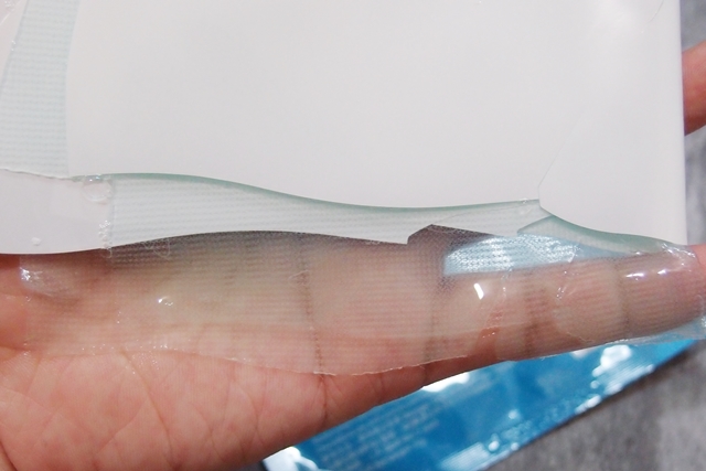 水藍色的晶透面膜,千萬不要以為敷上像果凍般的面膜會滑落不方便,這