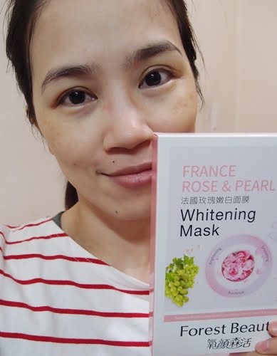 面膜布貼合在臉上的觸感是很細緻的,這款膜的pH值是中性的,敏弱肌膚也適用,成分中有珍珠萃取、葡萄籽植萃、α熊果素美白成分、日本玻尿酸,而其中的安定型α熊果素是可以在白天使用的優質美白成分