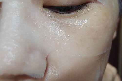 本身膚質偏乾,在敷這款面膜是建議15~20分鐘,我則是會敷滿20分鐘,取下後臉上還會有點濕潤感,雖說在取出面膜時精華液是很牽絲的那種,但敷完後將臉上剩餘的精華液按摩到吸收,這時臉部肌膚完全不會黏膩