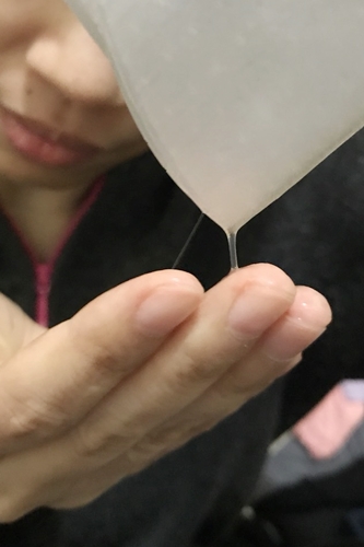 以法國珍貴的有機認證玫瑰水為基底,添加了日本純淨玻尿酸,取出面膜時留在手上的精華液的觸感蠻特別的,會有牽絲的效果,但其實質地又很清爽不會黏膩。