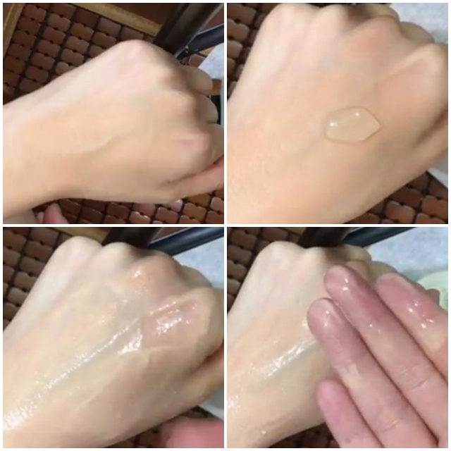 擠出適量的卸妝凝露在手背上後塗抹推勻。
