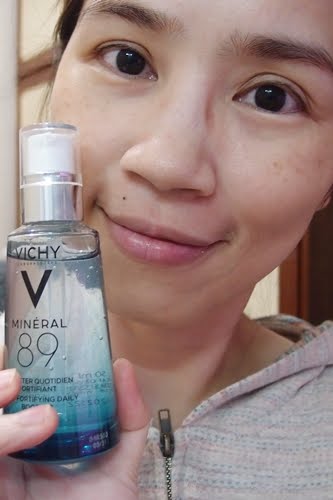 本身是乾性膚質在用量上會使用兩滴的M89火山能量微精華,凝露狀的精華裡可是薇姿首度將火山礦物溫泉水的濃度提升至89%,塗抹在臉上能立即得到保濕,M89質地清爽好吸收,肌膚不會有黏膩感。