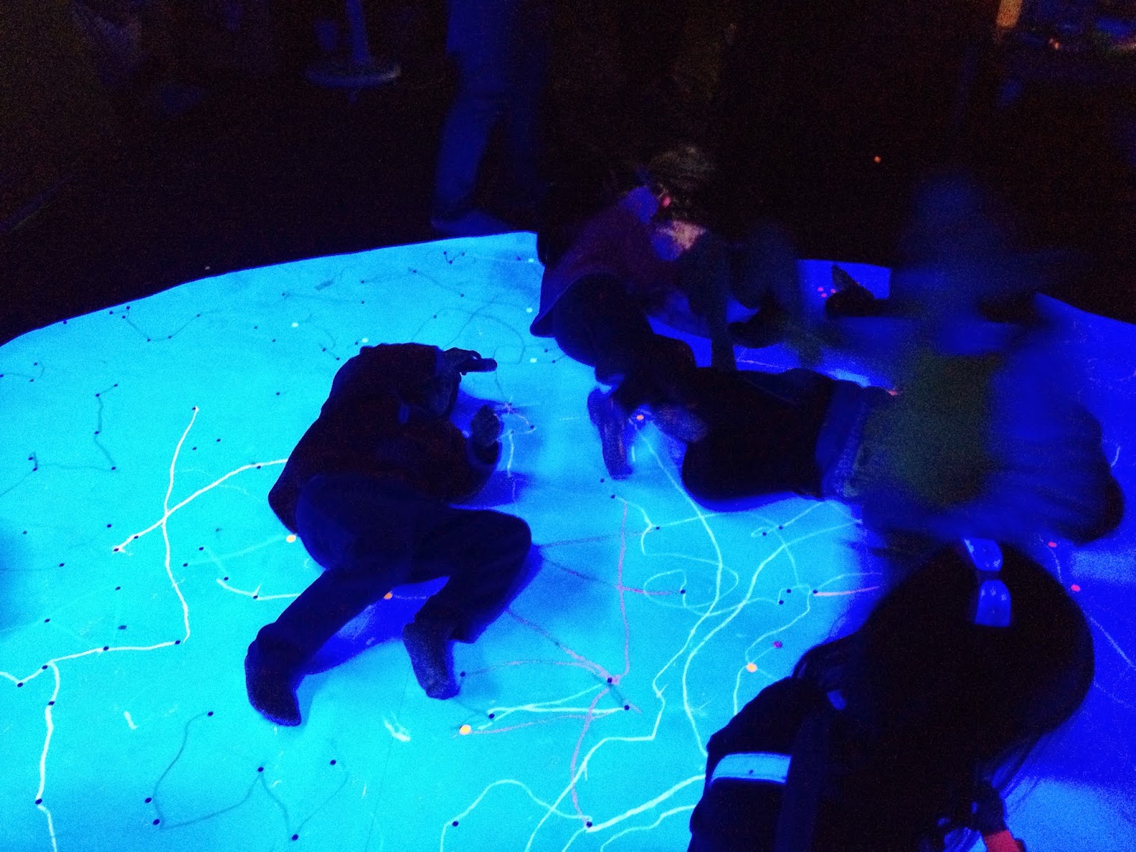 對!跟地板一樣大的圖畫紙, 上面打了很多不規則的小洞