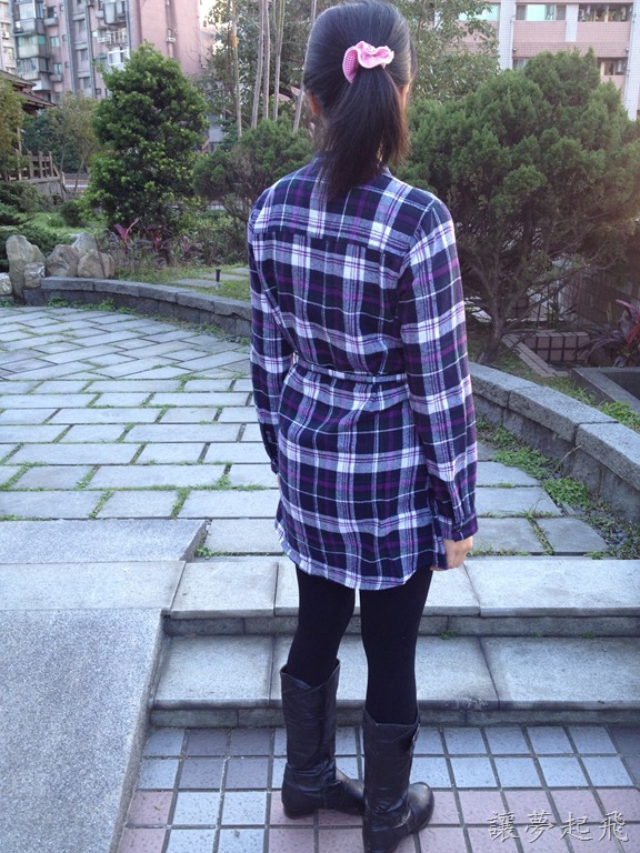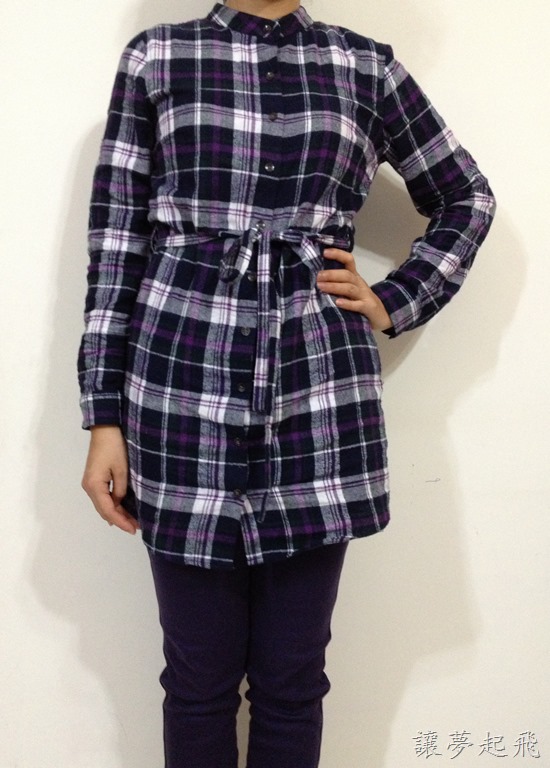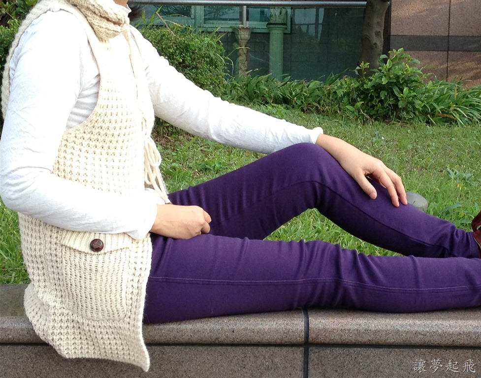 因為覺得深色總是好搭,又擔心亮色系會顯胖,因此我選了深色的紫丈青的顯瘦褲。