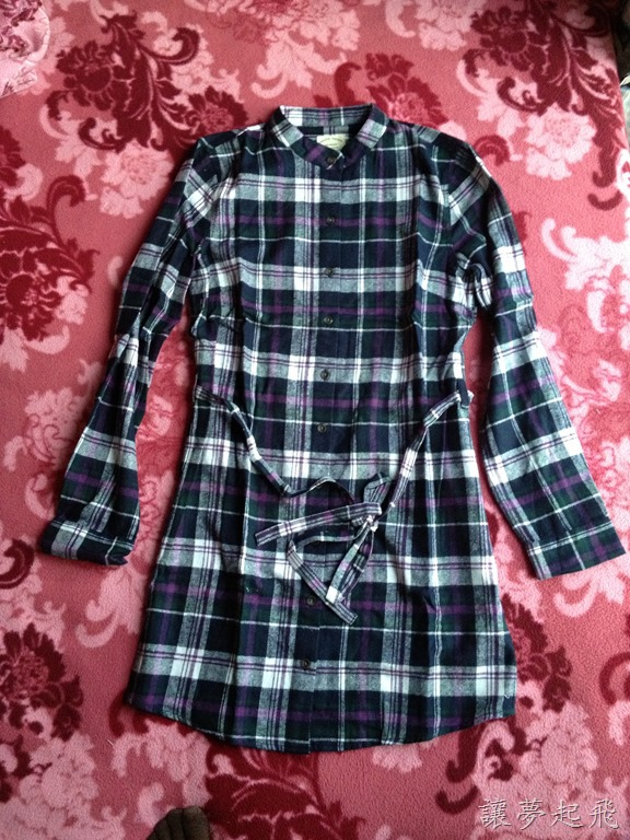 柔感純棉法蘭絨系列~仿舊經典格紋腰帶洋裝~白底綠紫格L