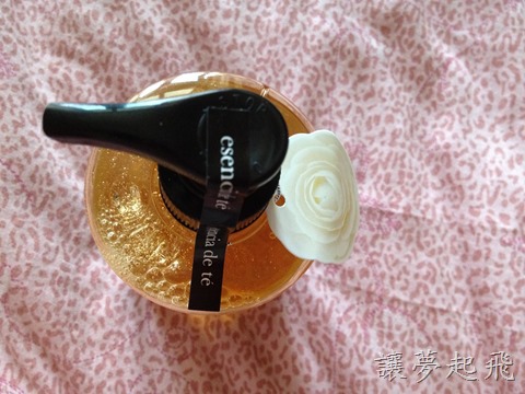按壓式的壓頭上面有表示是新品的貼條,還掛著一朵玫瑰圖案的標籤,看起來甚是美麗