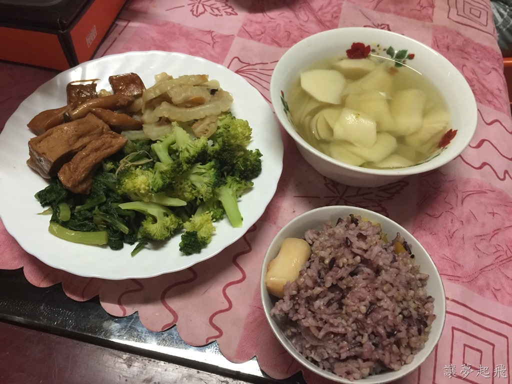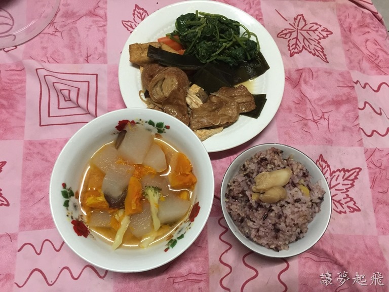 料理簡單卻用心,光是飯裡頭就使用了三種米混和而成~紫米、糙米以及白米