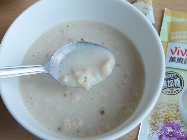 加熱水攪拌後才發現裡頭有堅果顆粒,至於黑黑的點點應該就是黑豆