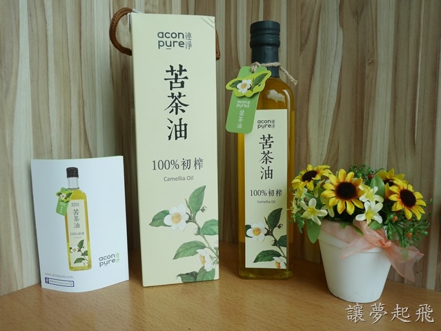 連淨純苦茶油用玻璃瓶裝,看起來色澤清純,聞起來有著一股濃濃苦茶油的清香