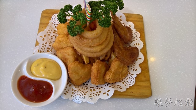 裡頭有脆薯、薯格格、麥克雞塊、黃金薯條、洋蔥圈、雞翅、起司薯球以及玉米可樂餅