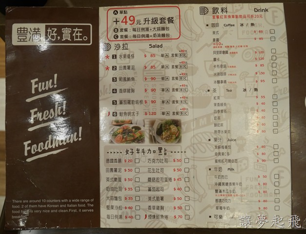 菜單很簡單,只有正反兩面