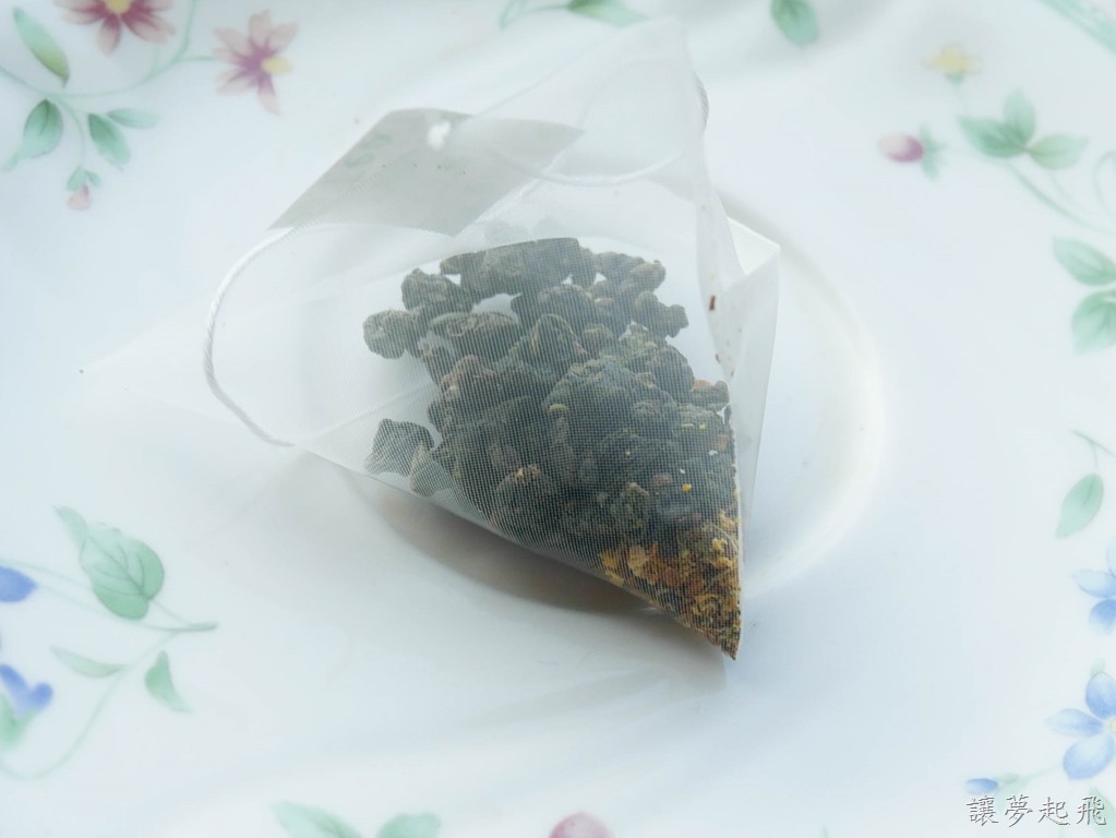 從茶包外頭就可以看到裡頭的烏龍茶及桂花