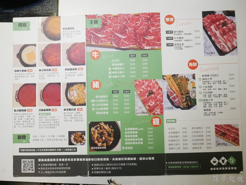 也有需要加價的香醇牛奶鍋(60)、泡菜鍋(60)、蕃茄鍋(60)、泰式酸辣鍋(80)、麻辣鍋(80)