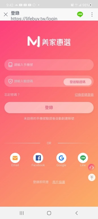 「美家惠選」的註冊方式很簡單,只要輸入手機號碼即可