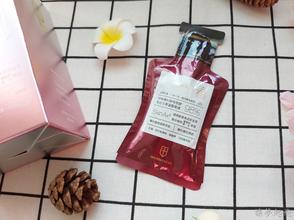 裡頭包含了三樣保健食品~GA黃金甲白藜蘆醇飲(早)+GA黃金甲葉黃素果凍(中)+GA黃金甲EX活力錠(晚)