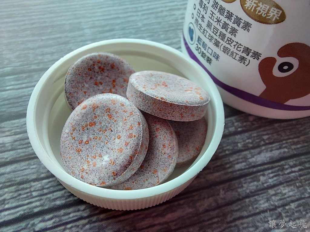 LONGUS葉黃素咀嚼錠是藍莓口味,一瓶裡頭有30顆