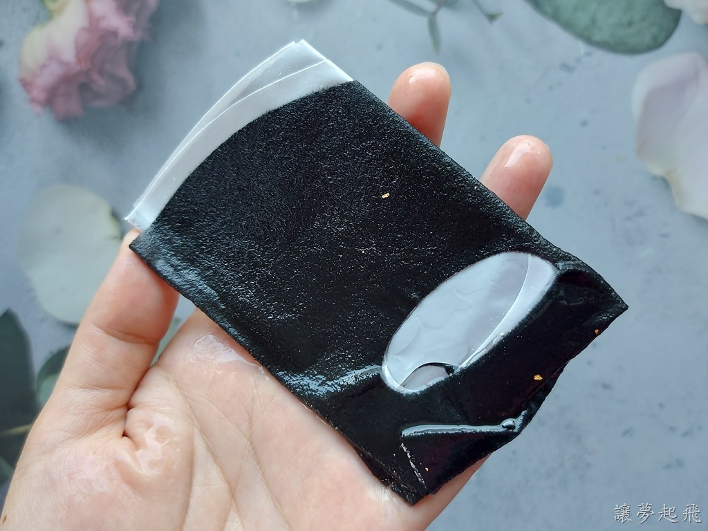 打開看看,黑面膜上頭可以看到金箔,材質摸起來非常的舒服
