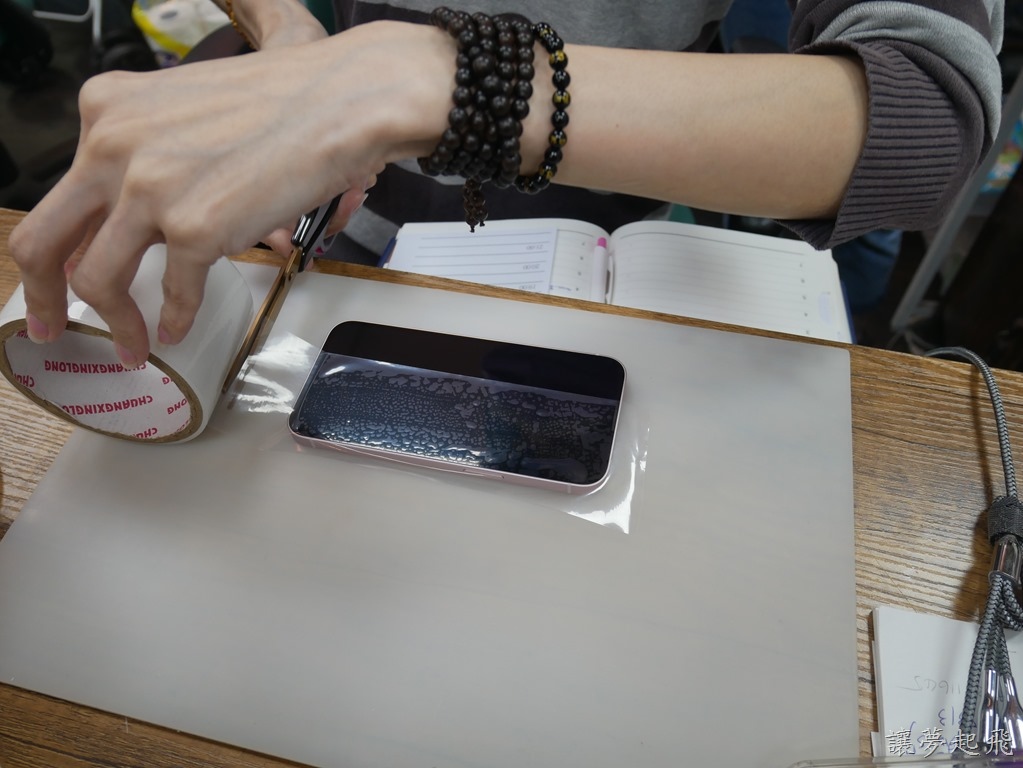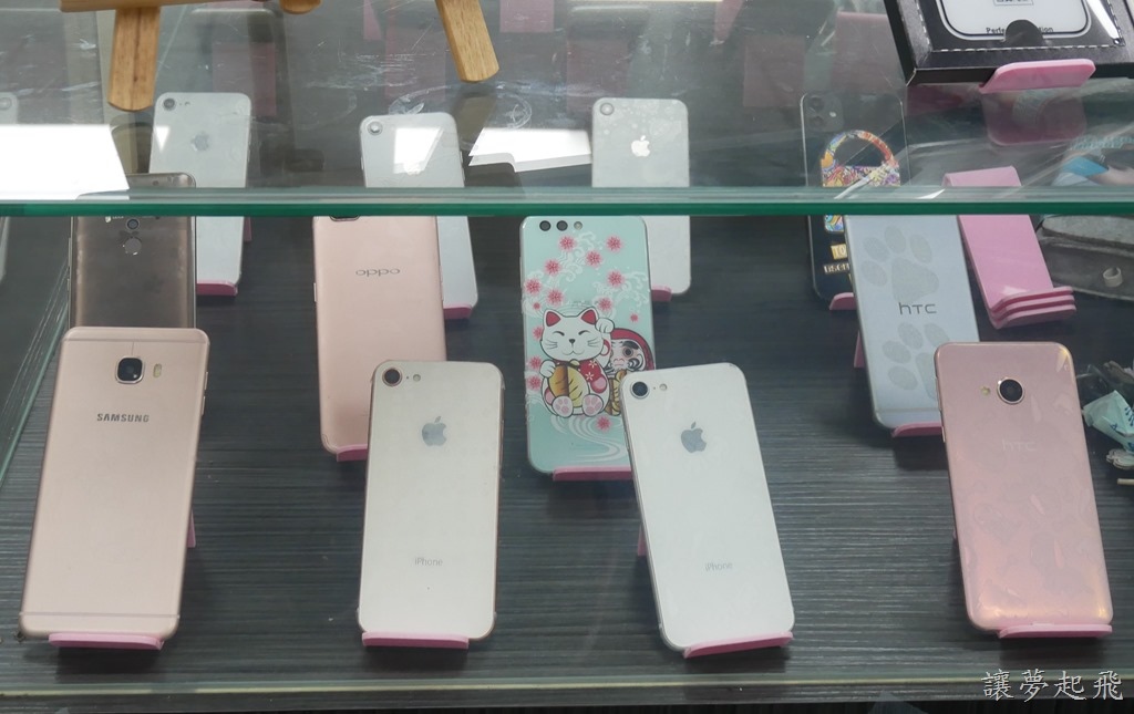 剛進門時,塔妮雅在「京展包膜」的玻璃櫃裡看到包膜後的手機