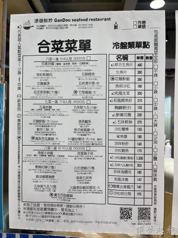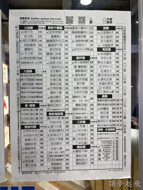 港都熱炒中山旗艦店除了可以依菜單點餐以外
