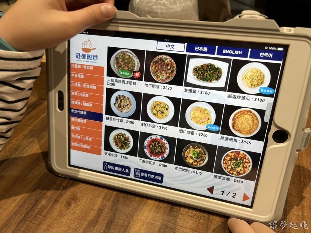 港都熱炒中山旗艦店的點餐方式很特別,是用平板點餐