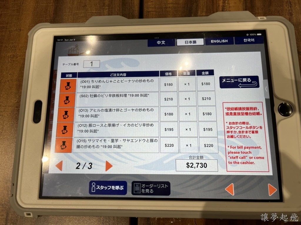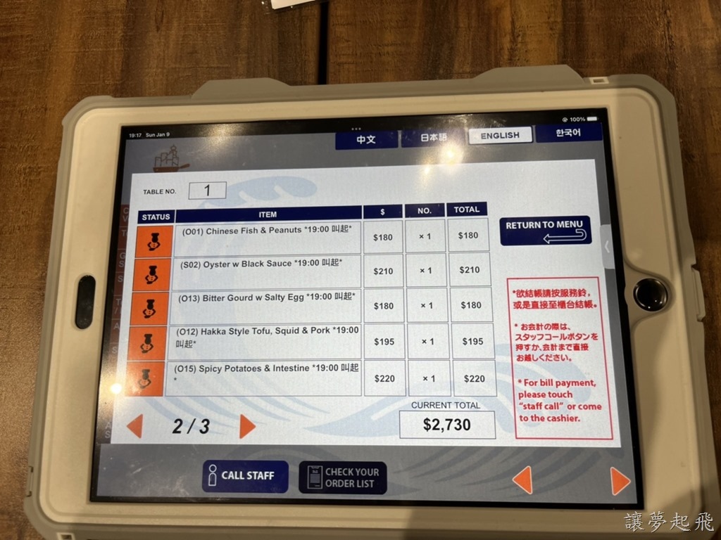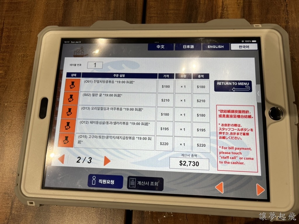 平板點餐超方便,有中、英、日、韓四種語言且圖文並茂