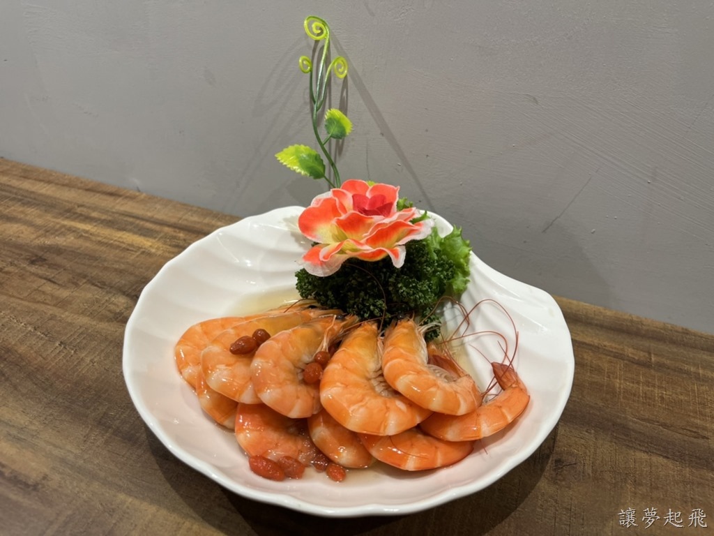 蝦子帶有淡淡的酒味,上頭有一些養生的枸杞