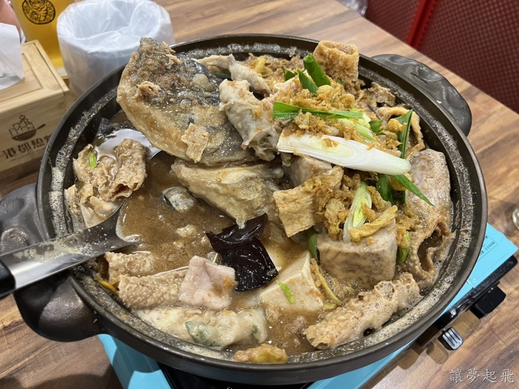 一整鍋滿滿的料,裡頭除了有鰱魚頭以外