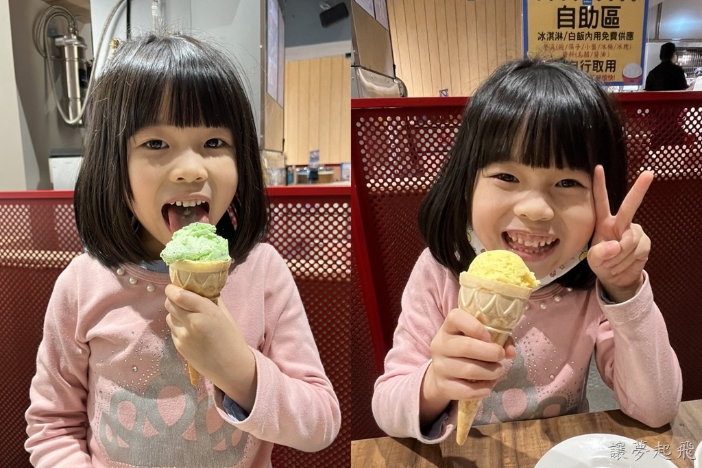 店內還有自助區免費供應白飯和冰淇淋,孩子們超愛