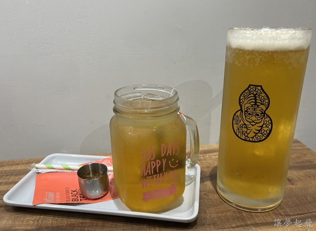 塔妮雅點的是梨山黑森林紅茶和臺虎精釀生啤酒(冰)