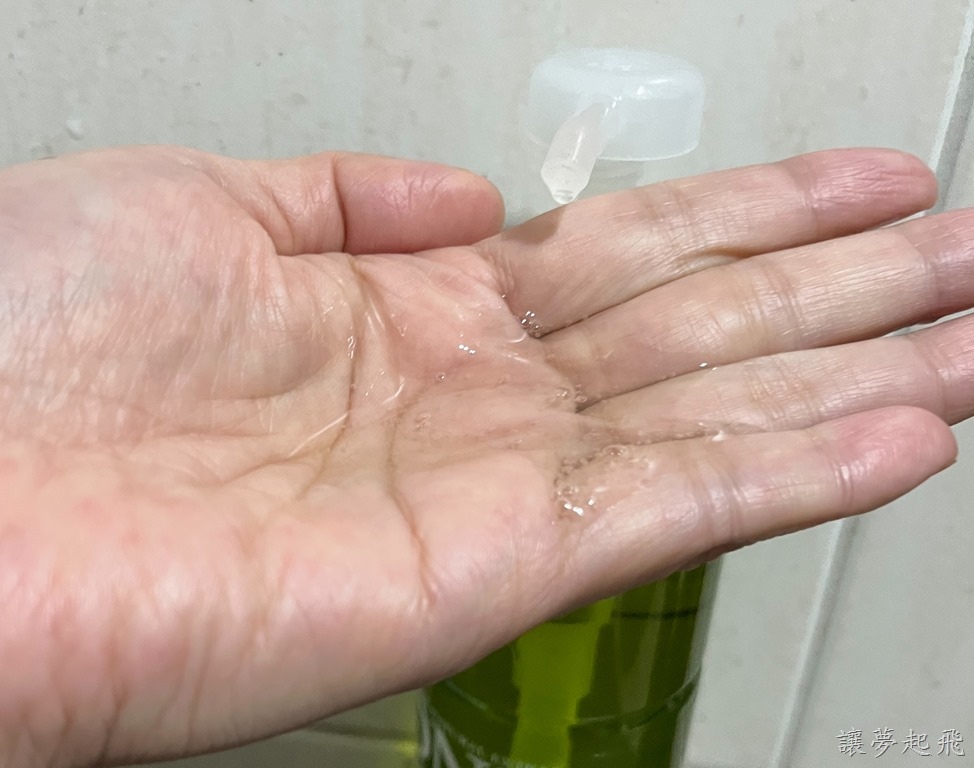 這款適用油性頭皮,質地呈透明液狀,聞起來涼涼的