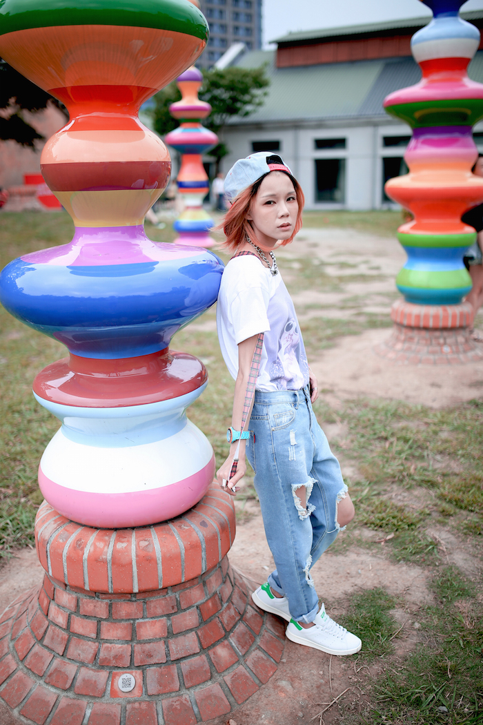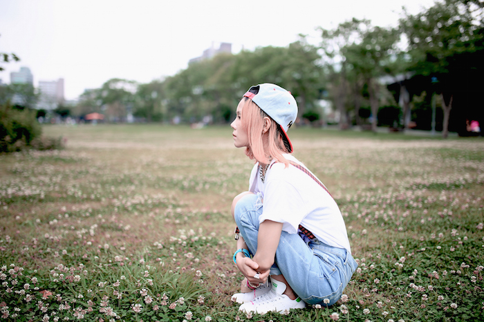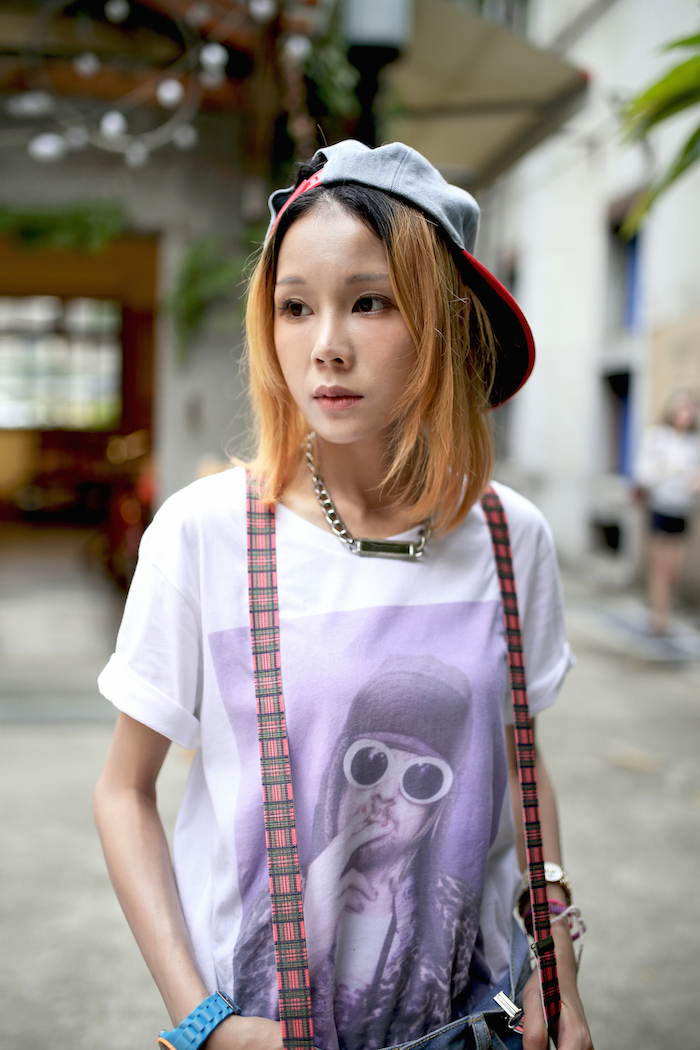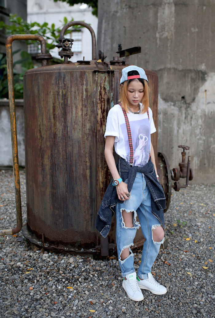 而我則是選擇用棒球帽和吊帶褲夾混搭出原宿街頭風格,就是一種說不上是某種特定風格,甚至很少見到有人這麼做,完全是依照自己的審美、心情、喜好而搭配,能夠享受這種不流行侷限、不需要在乎別人的審美眼光的搭配樂趣,不是很讚嗎?
