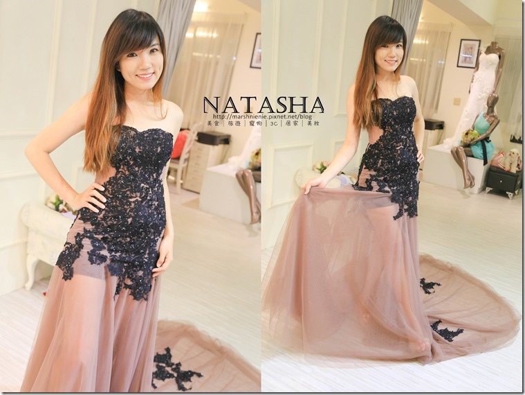 ▼我後來就是挑第一套的姐妹款,我試穿的那件背部沒有薄紗,而我租的則是有薄紗