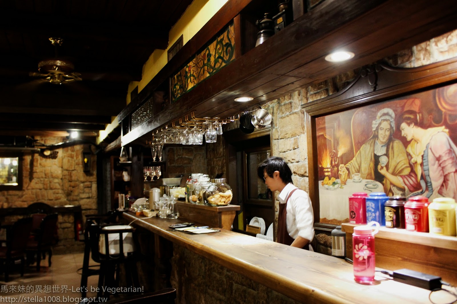 在一個酷似地窖的環境,品著暖暖的咖啡,暖色系的燈光投射在手中的書本上
