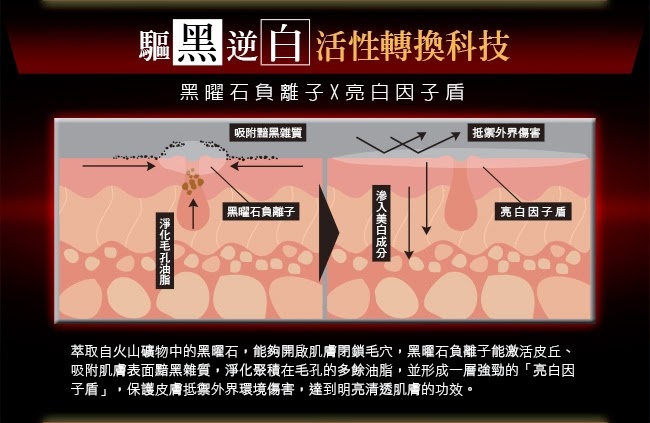 它可吸附肌膚表面黯黑雜質,並形成一層強勁的「亮白因子盾,達到明亮清透肌膚的功效!!